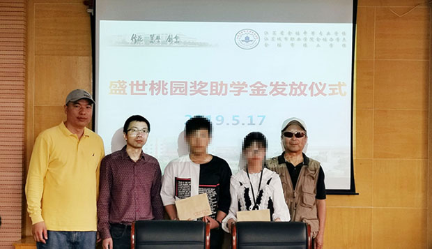 2019年5月17日中午,2019年春学期“盛世桃园”企业奖助学金发放仪式在我校行政楼二楼会议室举行。盛世桃园餐饮有限公司张总、曹董事长原班主任高老师、人力资源部陈总给我校30名贫困学生送来了“盛世桃园”企业奖助学金三万元整。