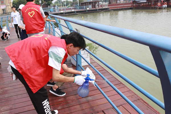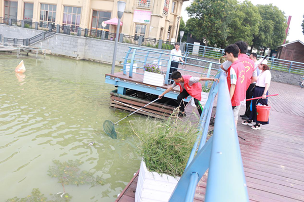 6月28日金坛区沧海志愿者和儒林中学部分师生,在儒林城管和物业的配合下,对长荡湖水街展开一次“美颜”活动。
