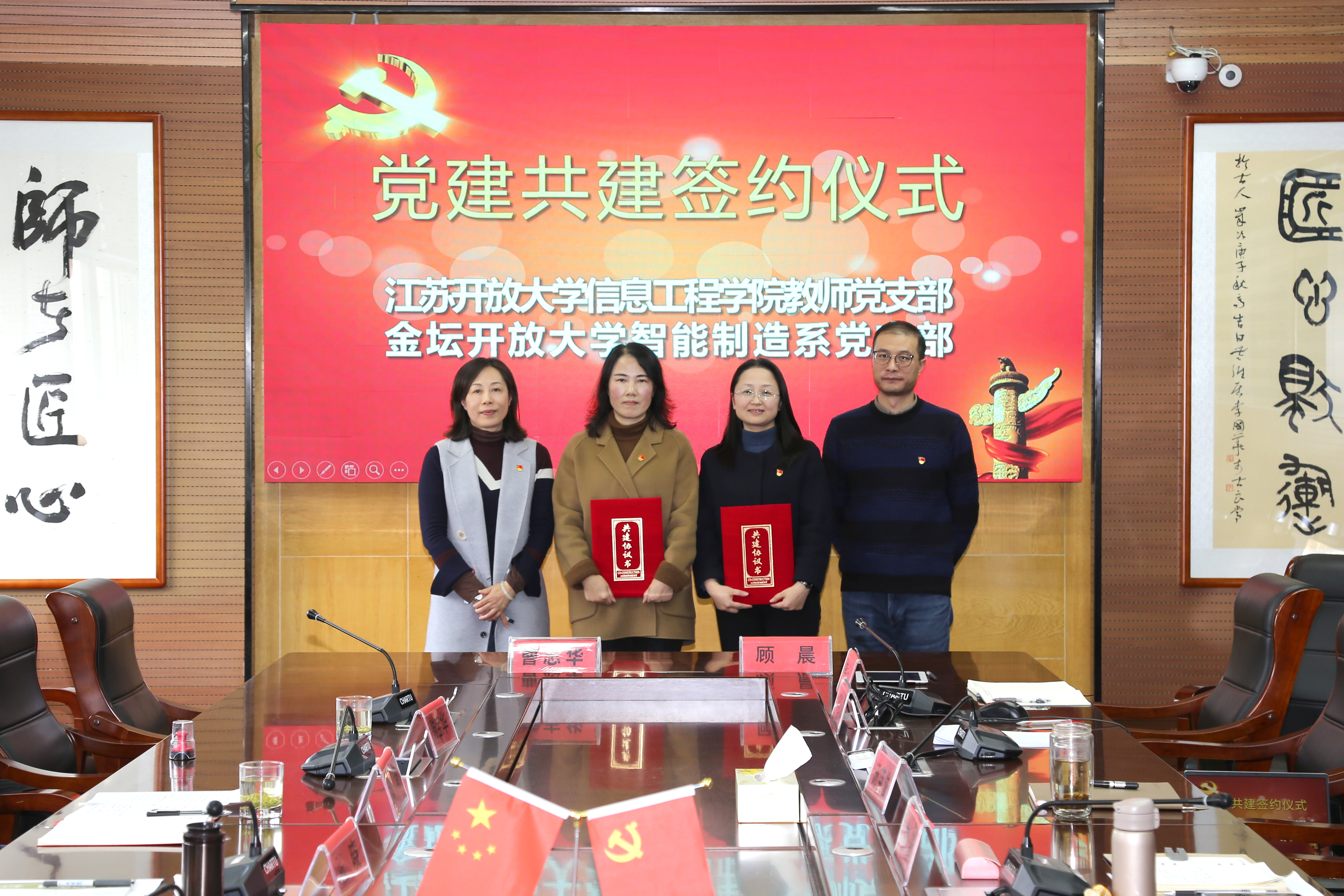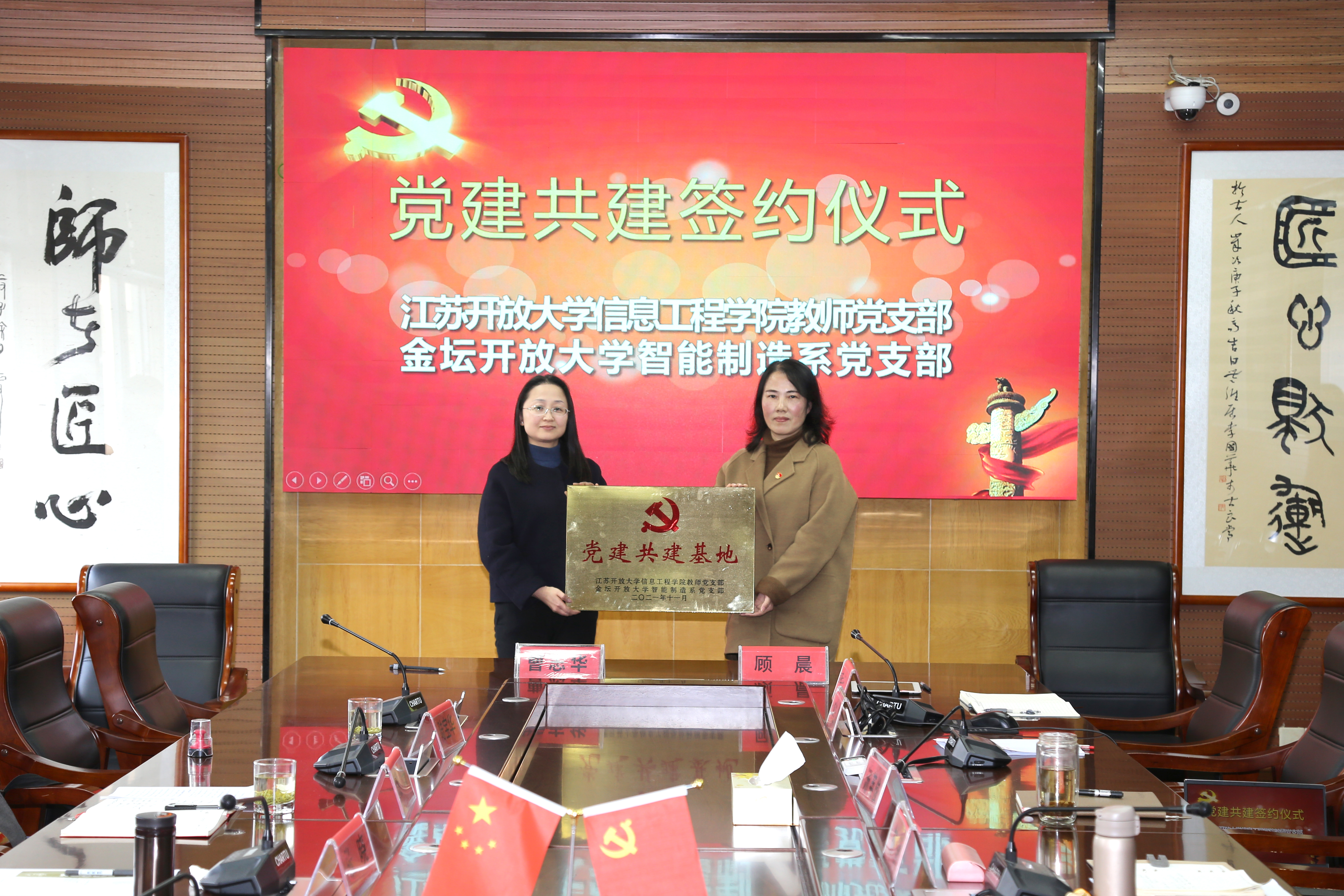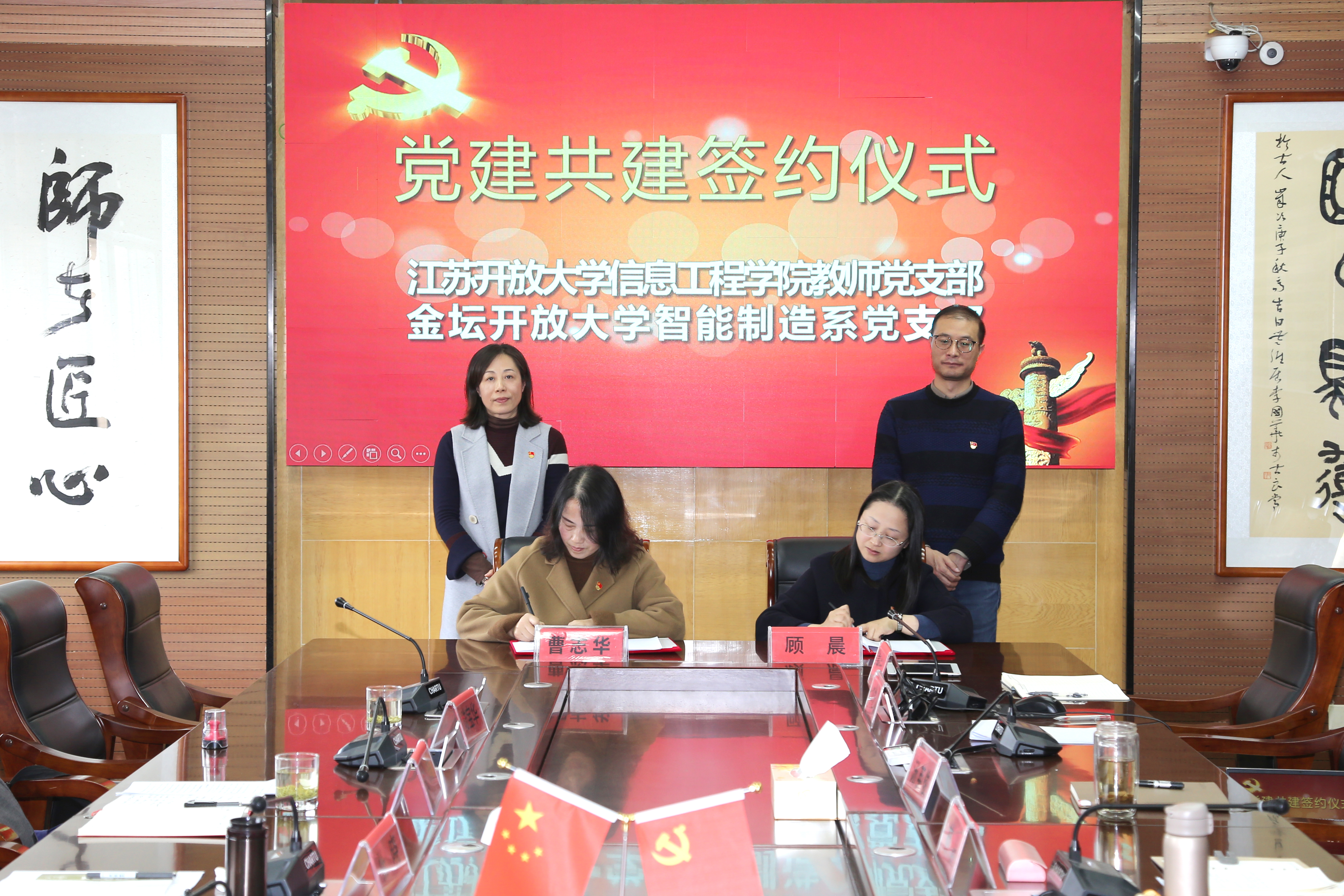 最后,江苏开放大学信息工程学院教师党支部与金坛开放大学智能制造系党支部举行了结对共建签约仪式。