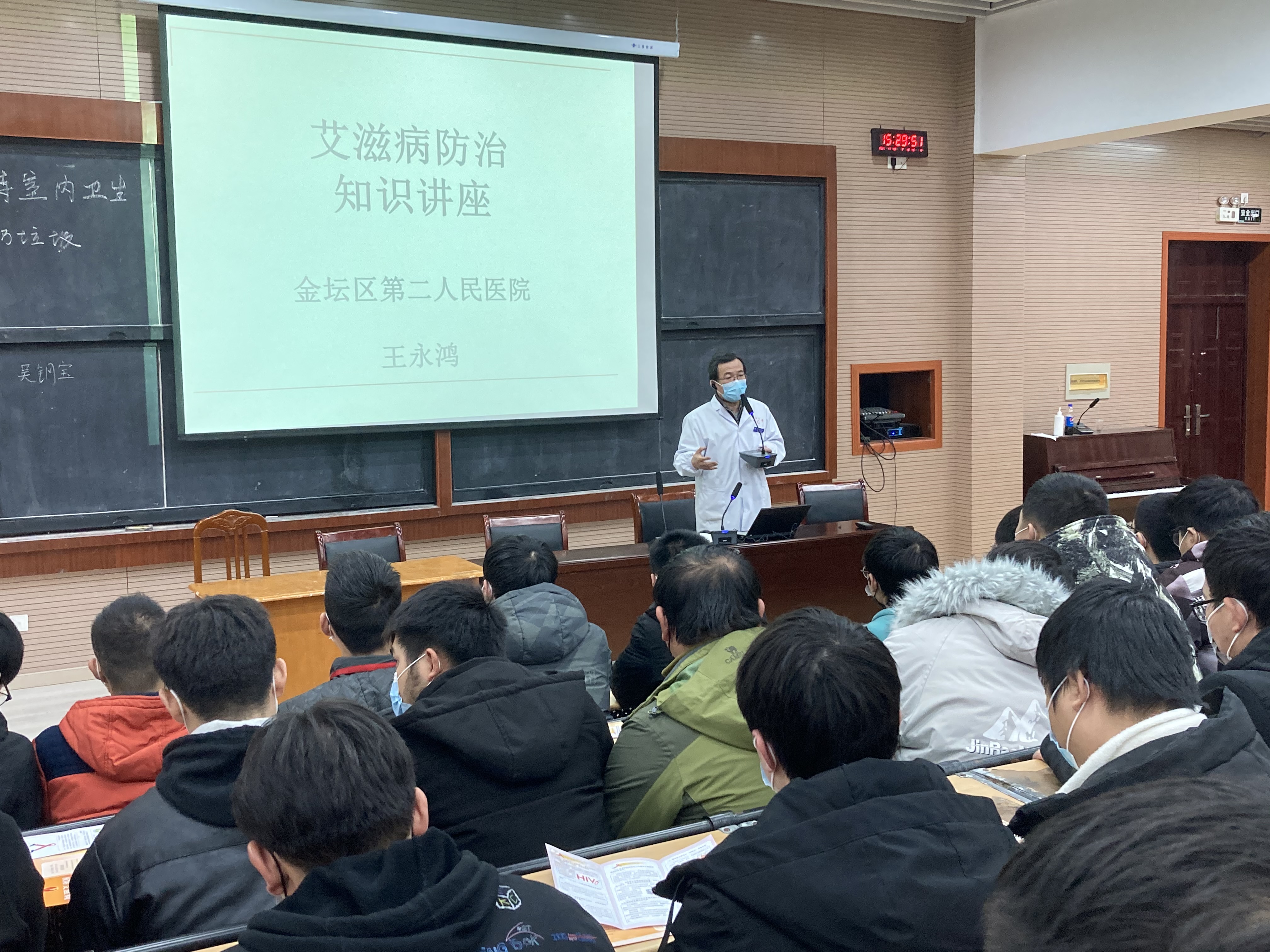 为广泛开展预防艾滋病宣传教育活动,普及艾滋病防控知识,进一步提高和增强广大师生了解更多的艾滋病防治知识,营造师生积极参与防艾抗艾的校园氛围。在第34个世界艾滋病日来临之际,2021年11月30日下午,金坛区第二人民医院的王永鸿主任,为我校师生带来了一场主题为“生命至上,终结艾滋,健康平等”的艾滋病防治知识专题讲座。