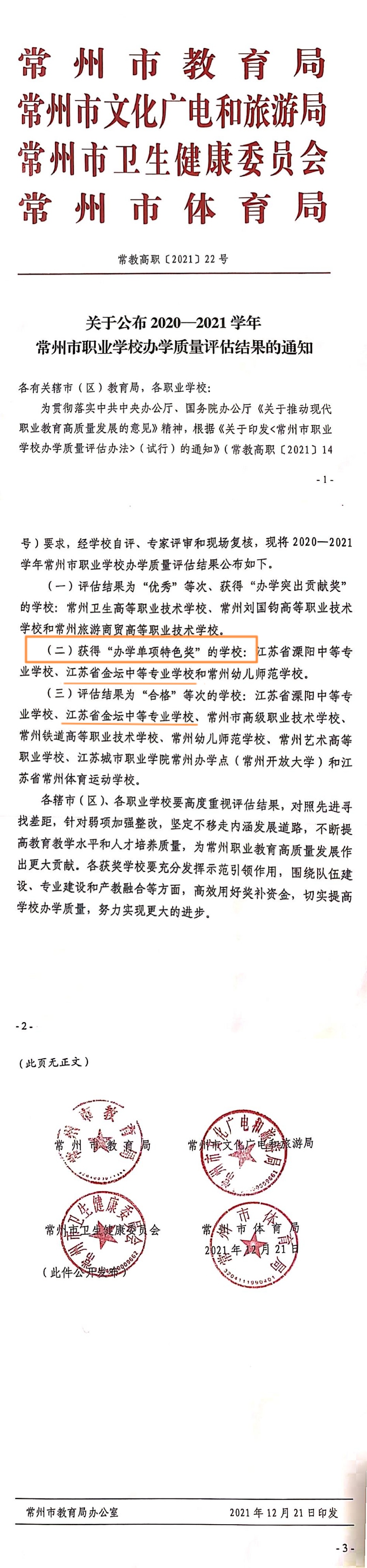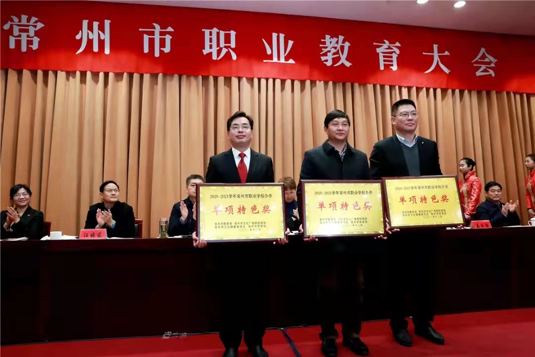 会议还为获“常州市职业学校2020—2021学年办学突出贡献奖”和“常州市职业学校2020—2021学年办学单项特色奖”共6所学校颁奖,我校位列其中。