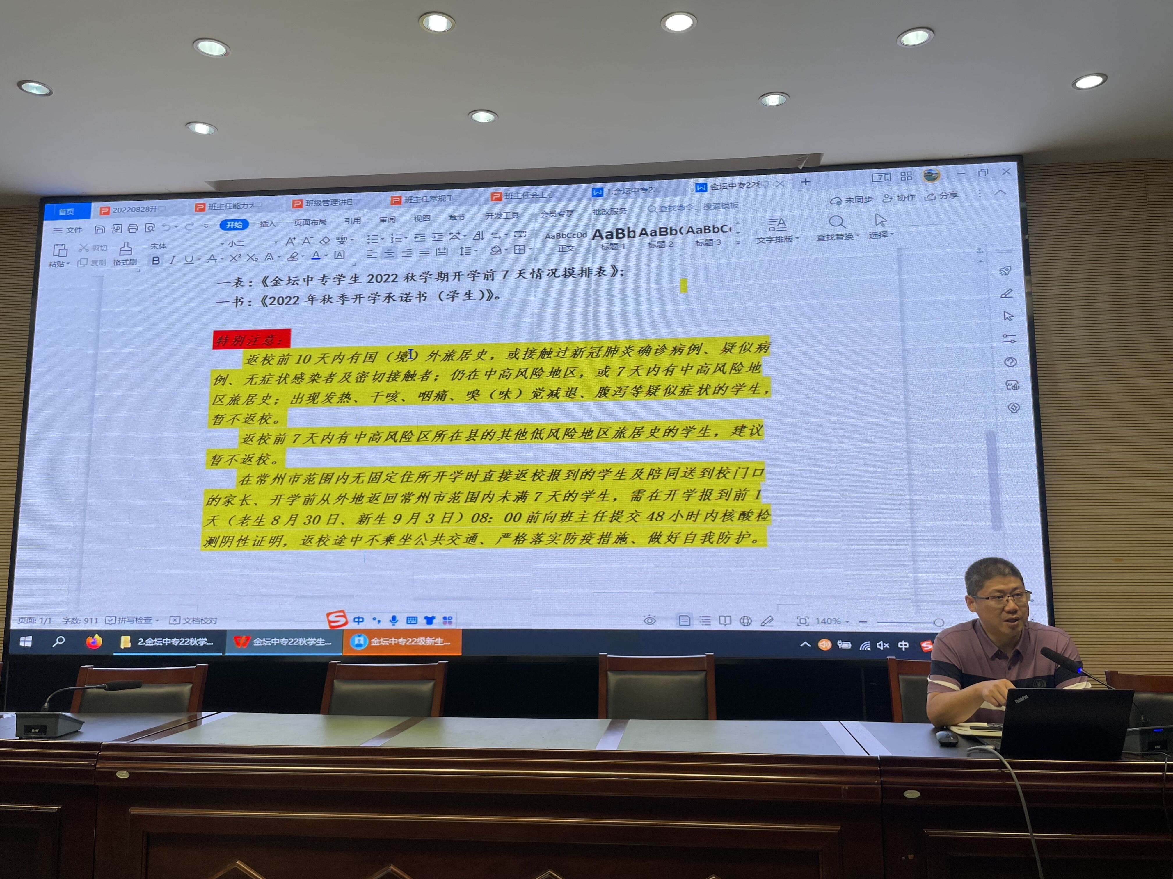 学生工作处(保卫处)李志斌处长对上一学年的班主任工作进行了总结,将存在的问题进行了反馈,并对开学报到相关的防疫、安全等工作进行了布置,要求进一步明确工作任务和职责,认真贯彻落实开学疫情防控工作相关要求,坚决确保开学各项工作的顺利开展。