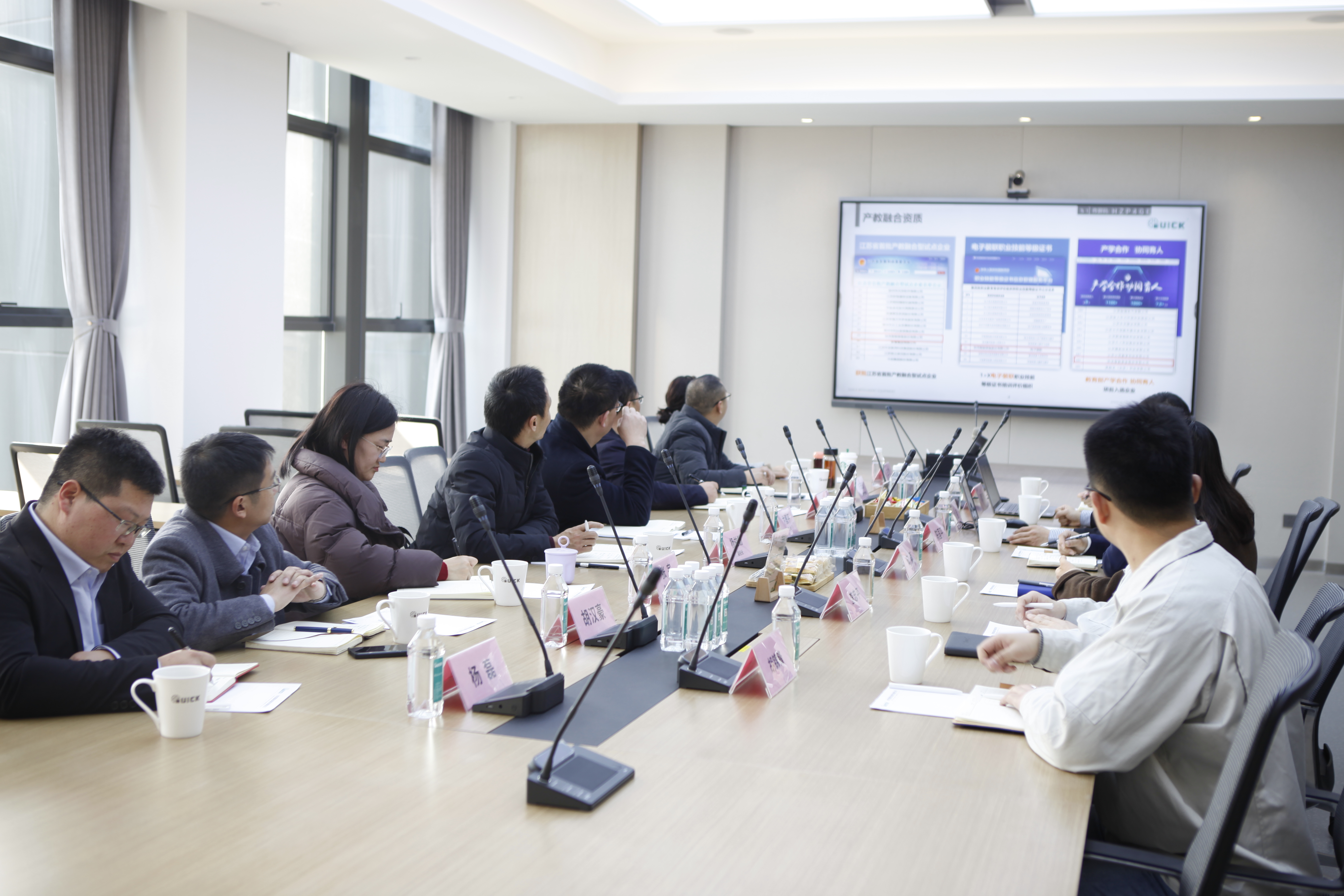 交流会上,金坛中专调研团队共同听取了快克公司产教事业部总监沈朋对企业在产教融合协同育人、电子装联人才培养方面的实践与成果的介绍,并通过产教事业部总经理陈国平的讲述了解了快克公司的发展历史和未来愿景。卞勇平校长重点介绍了我校电子专业的建设情况,电子专业在我校办学历史悠久,目前以五年制高职培养层次为主,多年来该专业立足于服务学生发展,为地方企业提供了有力的人才支撑。在当前推进产业转型升级,发展高端制造、智能制造的背景下,我校电子专业正在积极转型,谋求新的发展。