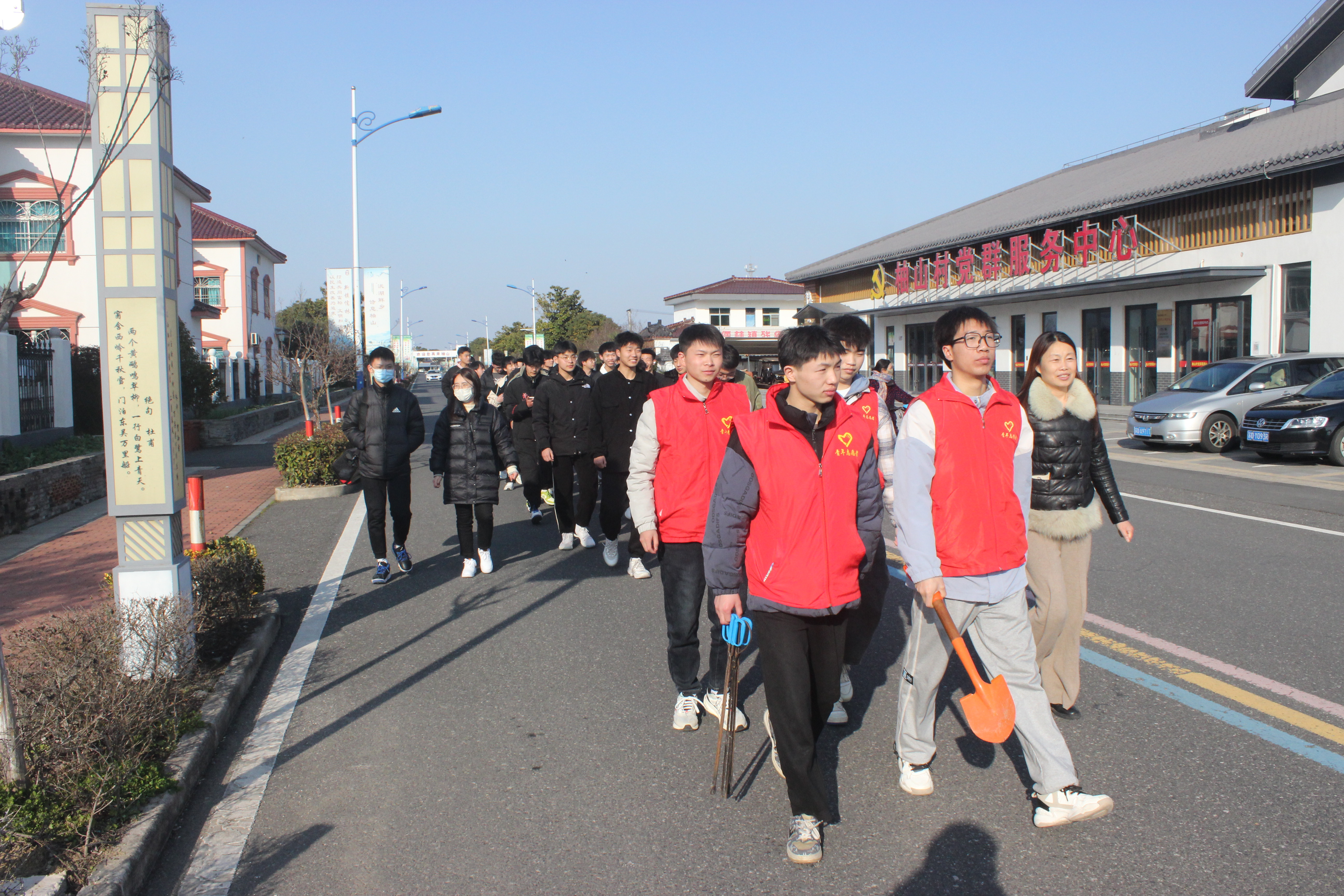 讲座结束后,同学们乘车来到美丽的江南水乡——儒林镇柚山村。现场参观了柚山村新时代文明实践站。并前往长荡湖畔,儒林镇水利站的同志介绍了长荡湖流域河道管护工作,为同学们展示了无人机巡河等高科技护河手段。最后,同学们沿湖开展了环境保护志愿活动,对河道障碍物及岸坡堆放垃圾进行清除,确保河道顺畅,水质干净。