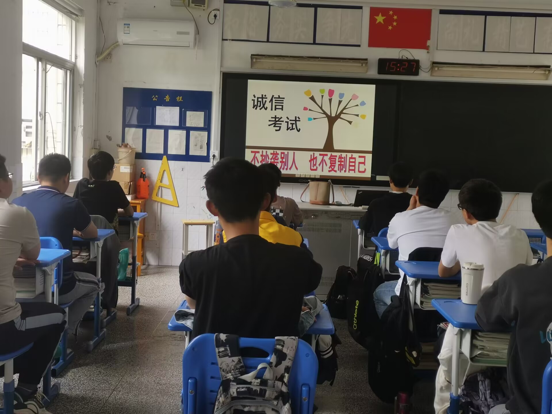 4月18日下午,全校各班级开设“诚信考试 拒绝作弊”主题班会,教育引导同学们积极备考,树立良好考风。鼓励同学们要以积极良好的心态迎接考试,疏解焦虑与紧张情绪。