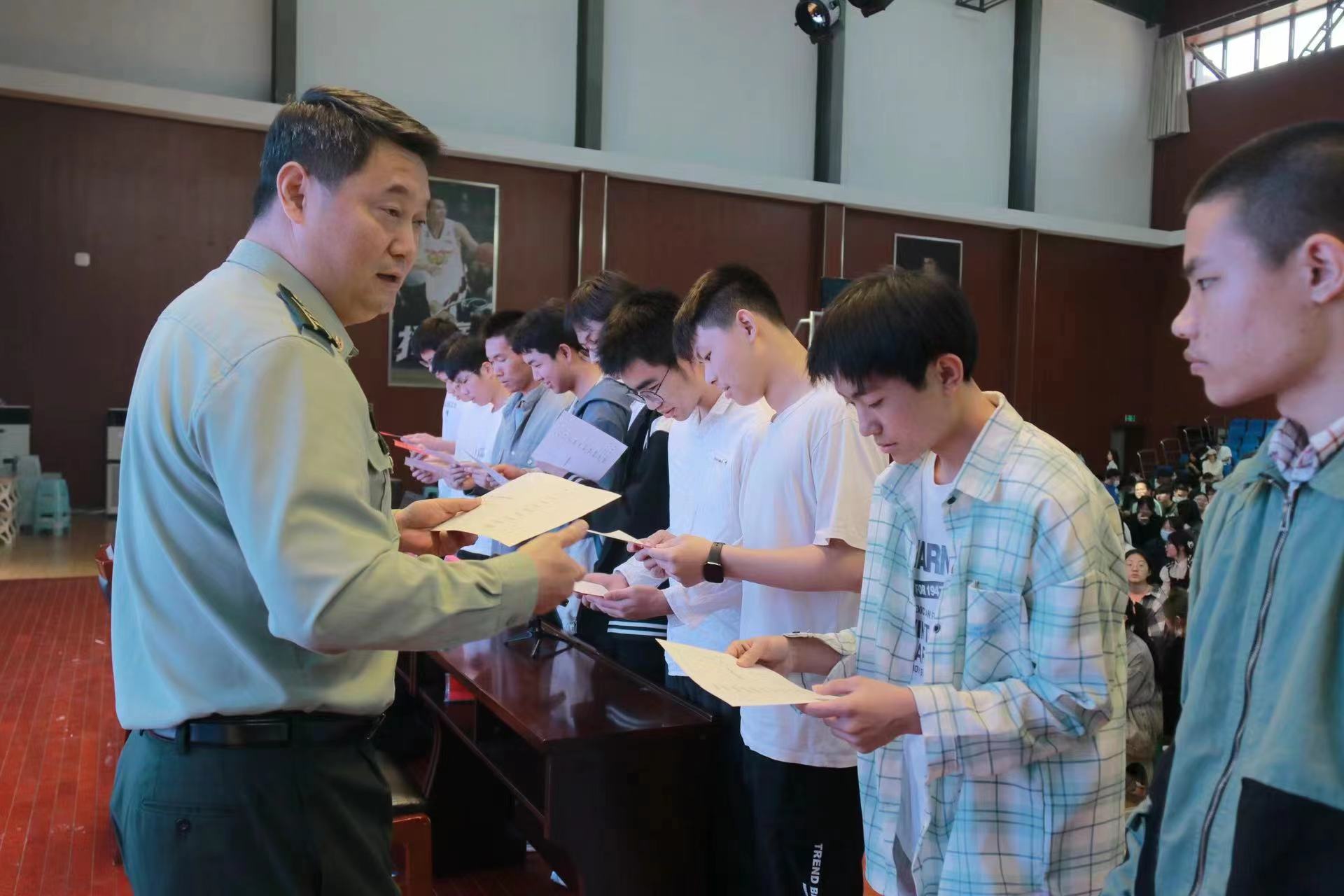 活动伊始,李志斌副校长简要介绍了我校近几年的国防教育及征兵工作情况,强调国防教育是全体学生的必修课,征兵工作是治国安邦的大事,是加强国防和军队建设的迫切需要。希望同学们能积极参与到国防事业的建设中去,增强自身保家卫国的使命感和责任感。
